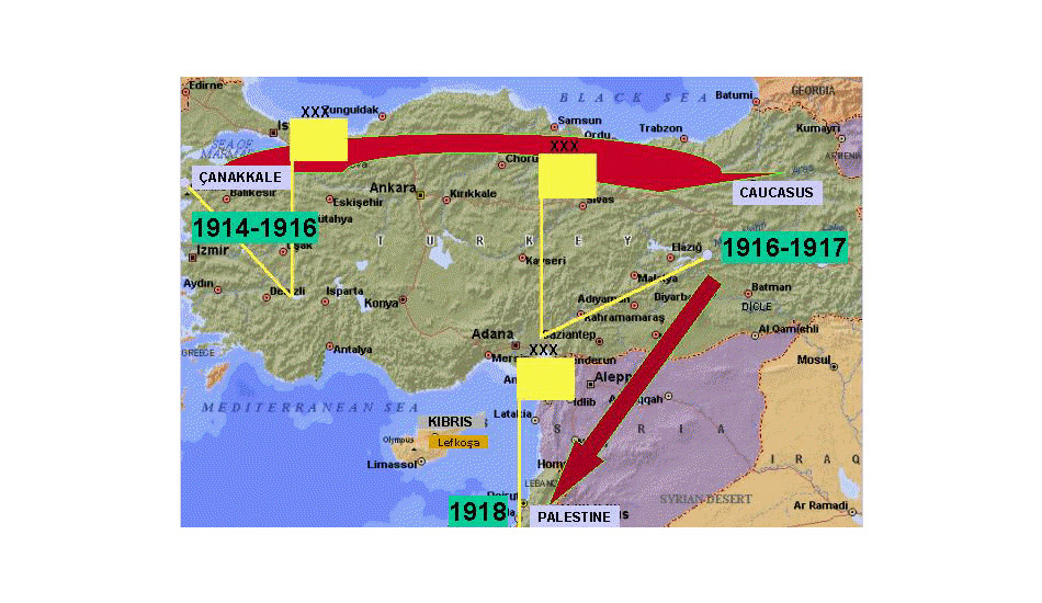 During the First World War, The 3rd (TU) Corps took part in the Battle Of Çanakkale (Gallipoli) between 1914 and 1916, and operated on the Caucasus front between 1916 and 1917, and in the Palestine Battles in 1918.